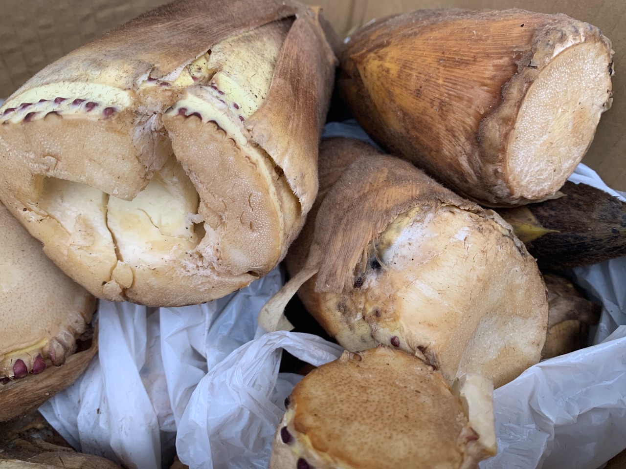 1kgで1〜10本、大小様々です。3kg以上のご注文でも、大きなタケノコ一本になることもございます。
