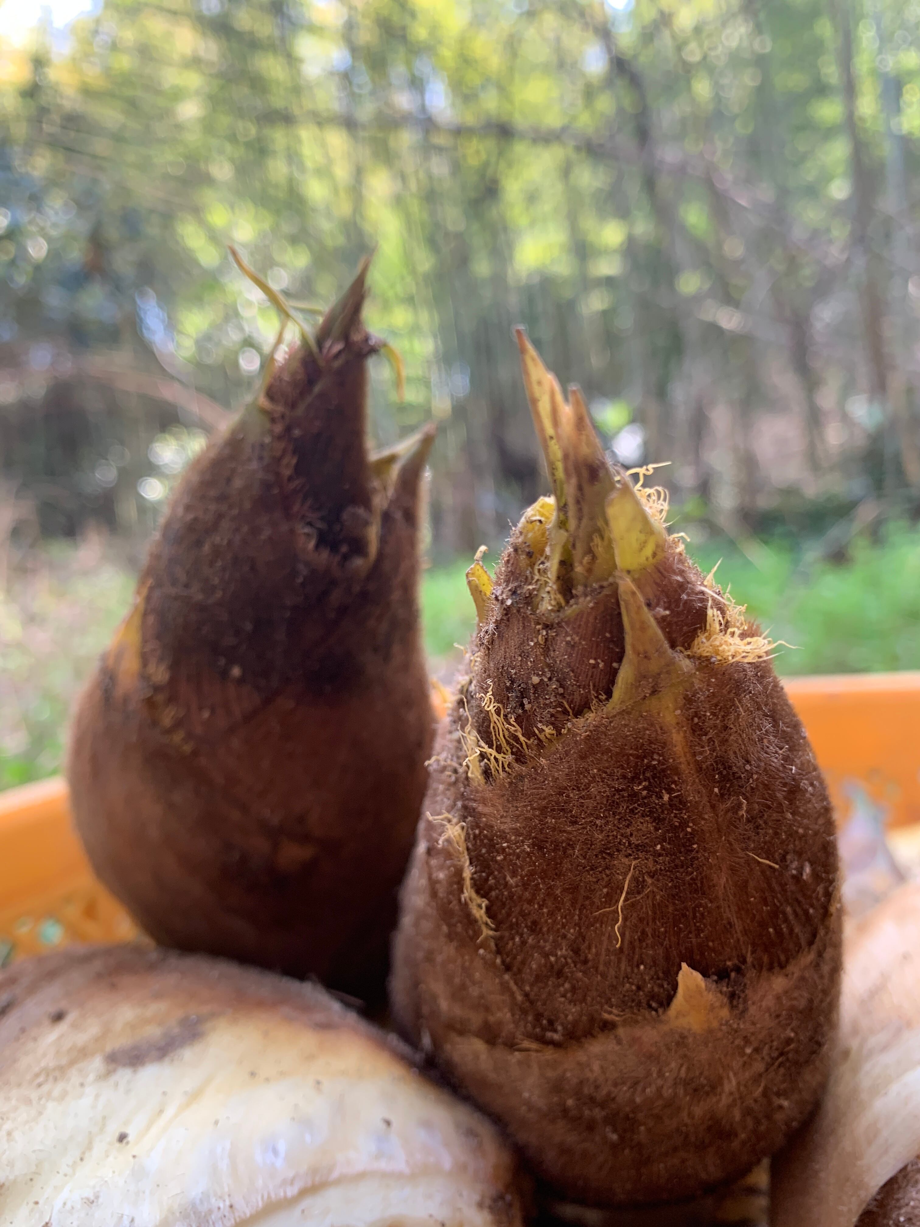 昔ネーブル畑だった肥えた土地に、自然に生えてくるタケノコです。