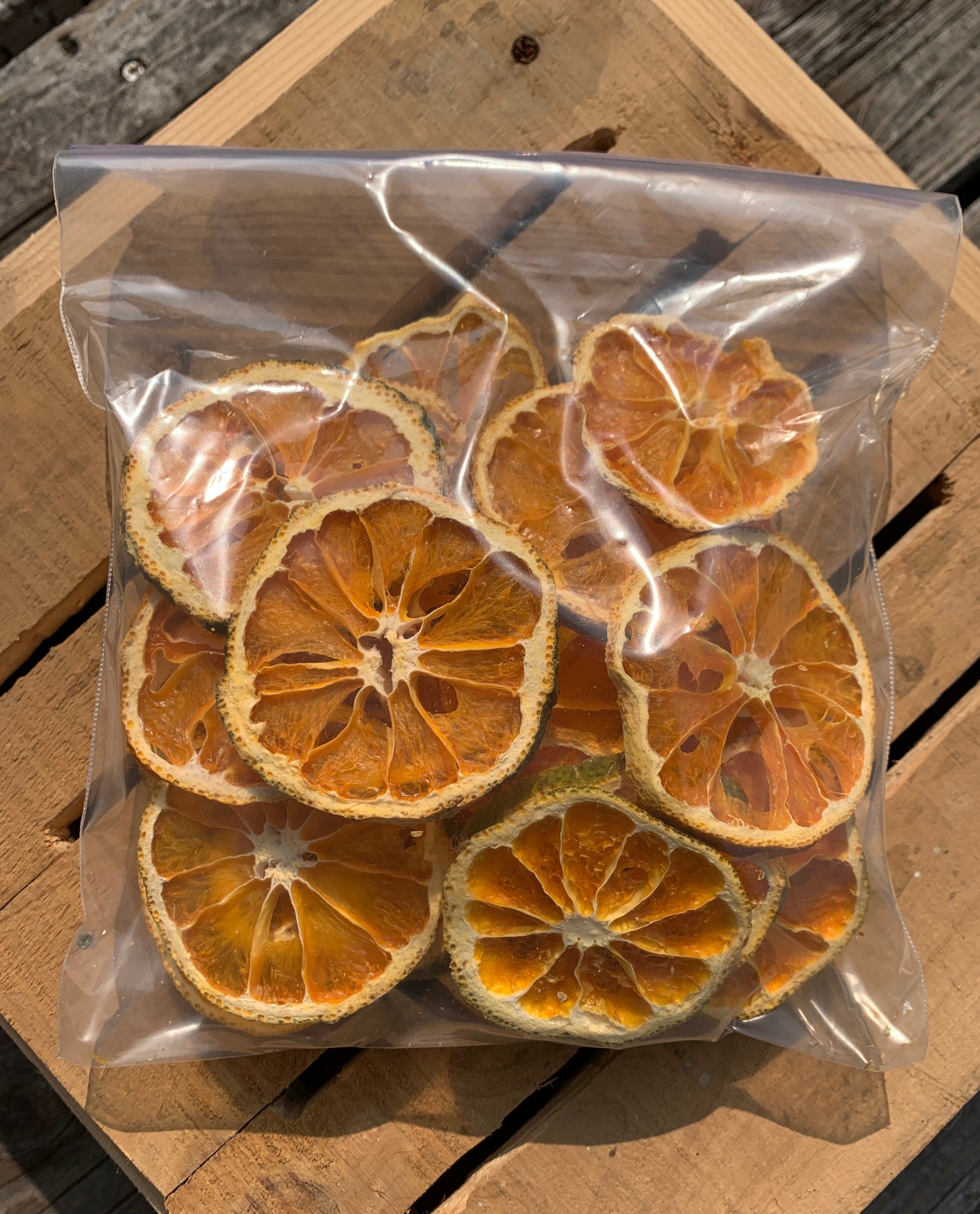 訳ありみかんを洗って、傷みや黒ずみなどの難を一つ一つ丁寧に取り除き、皮ごとスライスして乾燥させ、低温でじっくり熟成させました。